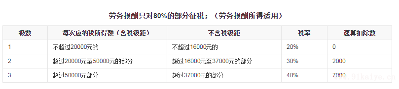 個(gè)人所得稅勞務(wù)報(bào)酬指的是個(gè)人獨(dú)立從事設(shè)計(jì)、安裝、制圖、醫(yī)療、電影、音樂(lè)等方面的工作,獲得的勞務(wù)就需要交個(gè)人所得稅勞務(wù)報(bào)酬,關(guān)于個(gè)人所得稅勞務(wù)報(bào)酬的繳納也是實(shí)行的稅收分段繳納制度,具體分為幾段,每段是多少的適用稅率,個(gè)人所得稅勞務(wù)報(bào)酬稅率表請(qǐng)看下文。 個(gè)人所得稅勞務(wù)報(bào)酬稅率表 勞務(wù)報(bào)酬的三檔稅率 勞務(wù)報(bào)酬的三檔稅率是預(yù)繳稅率,即按次預(yù)繳,年末匯算清繳。三擋預(yù)繳稅率的具體如下: 1、勞務(wù)收入低于4000元,基本扣除800元,稅率為20% 2、勞務(wù)收入高于4000元,基本扣除率20%,稅率為20% 3、勞務(wù)收入高于20000元,低于50000元,基本扣除率20%,稅率30% 4、勞務(wù)收入高于50000元,基本扣除率20%,稅率40% 因此,勞務(wù)報(bào)酬的預(yù)繳稅率,需要根據(jù)取得勞務(wù)收入的實(shí)際金額來(lái)確定應(yīng)預(yù)繳的個(gè)人所得稅稅率到底是多少,以及應(yīng)預(yù)扣預(yù)繳的稅金金額。 |