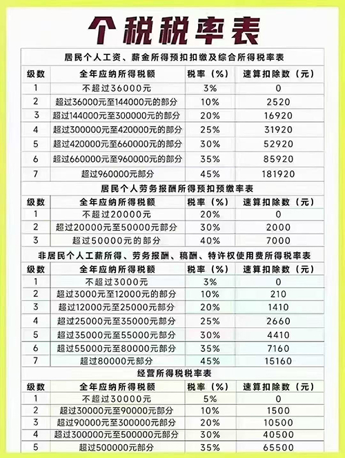 一、個人所得稅計算的方法是什么 工資個稅的計算公式為:應納稅額=(工資薪金所得 -“五險一金”-扣除數(shù))×適用稅率-速算扣除數(shù)。 個稅免征額是5000,使用超額累進稅率的計算方法如下: 繳稅=全月應納稅所得額*稅率-速算扣除數(shù)實發(fā)工資=應發(fā)工資-四金-繳稅。 全月應納稅所得額=(應發(fā)工資-四金)-5000。 扣除標準:個稅按5000元/月的起征標準算。 如果某人的工資收入為5000元,他應納個人所得稅為:(5000—個人所繳納的社會保險金額數(shù)—5000)×3%—0=個人應繳納所得稅金額數(shù)。 二、個人所得稅的相關法律依據(jù) 《個人所得稅法》第六條 應納稅所得額的計算: (一)居民個人的綜合所得,以每一納稅年度的收入額減除費用六萬元以及專項扣除、專項附加扣除和依法確定的其他扣除后的余額,為應納稅所得額。 (二)非居民個人的工資、薪金所得,以每月收入額減除費用五千元后的余額為應納稅所得額;勞務報酬所得、稿酬所得、特許權使用費所得,以每次收入額為應納稅所得額。 (三)經(jīng)營所得,以每一納稅年度的收入總額減除成本、費用以及損失后的余額,為應納稅所得額 (四)財產(chǎn)租賃所得,每次收入不超過四千元的,減除費用八百元;四千元以上的,減除百分之二十的費用,其余額為應納稅所得額。 (五)財產(chǎn)轉(zhuǎn)讓所得,以轉(zhuǎn)讓財產(chǎn)的收入額減除財產(chǎn)原值和合理費用后的余額,為應納稅所得額。 (六)利息、股息、紅利所得和偶然所得,以每次收入額為應納稅所得額。勞務報酬所得、稿酬所得、特許權使用費所得以收入減除百分之二十的費用后的余額為收入額。稿酬所得的收入額減按百分之七十計算。個人將其所得對教育、扶貧、濟困等公益慈善事業(yè)進行捐贈,捐贈額未超過納稅人申報的應納稅所得額百分之三十的部分,可以從其應納稅所得額中扣除;國務院規(guī)定對公益慈善事業(yè)捐贈實行全額稅前扣除的,從其規(guī)定。本條第一款第一項規(guī)定的專項扣除,包括居民個人按照國家規(guī)定的范圍和標準繳納的基本養(yǎng)老保險、基本醫(yī)療保險、失業(yè)保險等社會保險費和住房公積金等;專項附加扣除,包括子女教育、繼續(xù)教育、大病醫(yī)療、住房貸款利息或者住房租金、贍養(yǎng)老人等支出,具體范圍、標準和實施步驟由國務院確定,并報全國人民代表大會常務委員會備案。 只有個人工資減去社保后超過了5000元才需要繳個人所得稅,但繳納的個人收入越多,繳納的個人所得稅就越多。單位支付后發(fā)給員工的工資單包括工資和保險金。可以實際計算一下稅收、實際工資等,看看扣除的個人所得稅是否正確。 以上是玖邀開業(yè)網(wǎng)小編為您整理的關于個人所得稅計算的方法是什么的內(nèi)容,希望對您有所幫助。 |