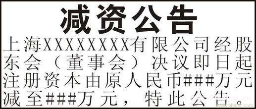 公司減資登報格式 XXX公司,統(tǒng)一社會信用代碼XXX(注冊號XXX)經(jīng)股東會決定,擬向公司登記機(jī)關(guān)申請減少注冊資本,注冊資本由人民幣100萬元減少至人民幣10萬元。請有關(guān)債權(quán)人自本公告見報之日起45日內(nèi)向公司提出債權(quán)債務(wù)或提供相應(yīng)擔(dān)保的請求。特此公告。 減資公告一定要登報嗎 當(dāng)一個公司公司出現(xiàn)資本過剩、虧損嚴(yán)重或經(jīng)營項目發(fā)生變更時,根據(jù)經(jīng)營業(yè)務(wù)的實際情況,依法減少注冊資本金的行為。 公司需要減少注冊資本時,必須編制資產(chǎn)負(fù)債表及財產(chǎn)清單。公司應(yīng)當(dāng)自作出減少注冊資本決議之日起十日內(nèi)通知債權(quán)人,并于三十日內(nèi)在省市報紙上刊登減資公告。債權(quán)人自接到通知書之日起三十日內(nèi),未接到通知書的自公告之日起四十五日內(nèi),有權(quán)要求公司清償債務(wù)或者提供相應(yīng)的擔(dān)保。公司減少資本后的注冊資本不得低于法定的最低限額。 履行相應(yīng)的變更登記手續(xù)。公司減少注冊資本,應(yīng)當(dāng)依法向公司登記機(jī)關(guān)辦理變更登記手續(xù)。公司資本的減少,將會引起公司章程的變更,因而,公司資本的減少應(yīng)當(dāng)向登記機(jī)關(guān)辦理變更登記。 股份有限公司通過收購本公司股票的方式減少注冊資本的,必須在10日內(nèi)注銷該部分股份,并依照法律、行政法規(guī)辦理變更登記并公告。 公司減資需通知、公告?zhèn)鶛?quán)人。在減資協(xié)議做出之日起10日內(nèi)通知債權(quán)人,并在報紙上公告30日,所以減資公告一定要登報。 以上是玖邀開業(yè)網(wǎng)小編為您整理的關(guān)于的的內(nèi)容,希望對您有所幫助。 |