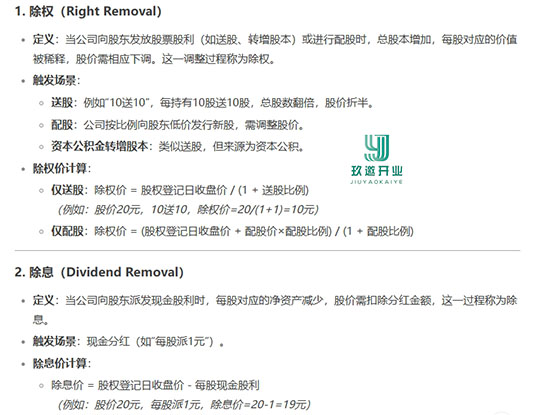 什么叫除權(quán) 除權(quán),涉及兩種情況,一種是指股票的發(fā)行公司依一定比例分配股票給股東,作為股票股利,此時增加公司的總股數(shù),還有一種是指股票的發(fā)行公司向股東配股。 除權(quán)是由于公司股本增加,每股股票所代表的企業(yè)實際價值(每股凈資產(chǎn))有所減少,需要在發(fā)生該事實之后從股票市場價格中剔除這部分因素,而形成的剔除行為。 上市公司以股票股利分配給股東,也就是公司的盈余轉(zhuǎn)為增資時,或進行配股時,就要對股價進行除權(quán)。上市公司將盈余以現(xiàn)金分配給股東,股價就要除息。 除權(quán)產(chǎn)生是因為投資人在除權(quán)之前與當天購買者,兩者買到的是同一家公司的股票,但是內(nèi)含的權(quán)益不同,顯然相當不公平。因此,必須在除權(quán)當天向下調(diào)整股價,成為除權(quán)參考價。 以上是玖邀開業(yè)網(wǎng)小編為您整理的關(guān)于什么叫除權(quán)的內(nèi)容,希望對您有所幫助。 |
