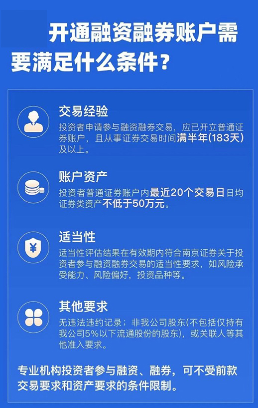 融資融券開戶條件 融資融券就是投資者使用保證金或其他證券作為擔保購買證券或借入證券出售。那么投資者可以開通融資融券的條件是什么? 開立融資融券交易賬戶的前提條件 1、證券交易時間達到6個月以上,最近20個交易日平均每日證券資產不低于50萬元。 2、申請開立融資融券業(yè)務,需將有效期內的身份證原件帶到最近營業(yè)部的現場柜臺。 3、辦理申請時無嚴重不良信用記錄。 4、風險承受能力處于C4-積極性及以上的有效狀態(tài)。 5、公司要求的其他條件。 融資融券的風險 1、杠桿交易風險:融資融券交易一旦判斷錯誤,將面臨虧損擴大的風險,因為融資融券交易在投資規(guī)模中也提供了一定比例的杠桿。而當股價下跌時,投資者不僅要承擔投資損失,還需要支付融資利息。 2、強制交割風險:為保護公司債權,證券公司將對投資者的負債進行實時監(jiān)控。當投資者經濟狀況不佳時,證券公司將強制關閉投資者的擔保資產。 3、監(jiān)管風險:當融資融券交易的交易過程出現異;蚴袌龃嬖陲L險時,監(jiān)管部門將采取監(jiān)管措施保持市場穩(wěn)定。這些措施有時會影響投資者的交易,甚至暫停保證金交易。 融資融券的作用 1、融資融券交易有助于投資者表達對股票實際投資價值的預期,引導股價反映其內在價值,在一定程度上減緩證券價格的波動,維護證券市場的穩(wěn)定。 為了有效緩解市場的資金壓力,證券公司的融資渠道可以有多種方式,如資金,因此融資自由化和銀行資金進入市場也將分兩步進行。在股市低迷的情況下,對于基金等需要資本監(jiān)管的機構來說,它不僅可以解決急需,還可以帶來相當好的投資回報。 2、融資融券交易有利于市場交易的活躍性,利用市場記憶的資本放大效應,這也是刺激股票市場活躍的一種方式,有利于增加股市的流動性。 3、融資融券交易不僅可以為證券公司帶來大量的傭金收入和息差收入,還可以衍生出大量的產品創(chuàng)新機會,為自營業(yè)務降低成本和套期保值提供了可能。 4、融資融券制度是現代多層次證券市場的基礎,也是解決新舊分割后不可避免的結構性供求失衡的配套政策。 以上是玖邀開業(yè)網小編為您整理的關于融資融券開戶條件的內容,希望對您有所幫助。 |