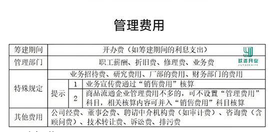 管理費(fèi)用屬于期間費(fèi)用,是企業(yè)行政管理部門在組織管理過程中所產(chǎn)生的的費(fèi)用。那么企業(yè)的管理費(fèi)用明細(xì)科目有哪些呢? 什么是管理費(fèi)用? 管理費(fèi)用是企業(yè)行政管理部門為組織和管理生產(chǎn)經(jīng)營(yíng)活動(dòng)而發(fā)生的各種費(fèi)用。企業(yè)應(yīng)設(shè)置“管理費(fèi)用”科目,用來核算管理費(fèi)用發(fā)生和結(jié)轉(zhuǎn)情況。借方記企業(yè)發(fā)生的管理費(fèi)用,貸方記期末結(jié)轉(zhuǎn)入“本年利潤(rùn)”當(dāng)中的管理費(fèi)用。因?yàn)橐呀?jīng)結(jié)轉(zhuǎn),所以期末管理費(fèi)用應(yīng)無余額。 管理費(fèi)用的明細(xì)類科目 管理人員工資、職工福利費(fèi)、差旅費(fèi)、辦公費(fèi)、折舊費(fèi)、修理費(fèi)、物料消耗、低值易耗品攤銷、工會(huì)經(jīng)費(fèi)、職工教育經(jīng)費(fèi)、勞動(dòng)保險(xiǎn)費(fèi)、董事會(huì)費(fèi)、咨詢費(fèi)、審計(jì)費(fèi)、訴訟費(fèi)、綠化費(fèi)、技術(shù)開發(fā)費(fèi)、無形資產(chǎn)攤銷、業(yè)務(wù)招待費(fèi)、倉(cāng)儲(chǔ)費(fèi)用、保險(xiǎn)費(fèi)、水電費(fèi)、運(yùn)輸費(fèi)、、取暖費(fèi)、警衛(wèi)消防費(fèi)、會(huì)議費(fèi)、職工交通費(fèi)、勞動(dòng)保護(hù)費(fèi)、租賃費(fèi)、環(huán)保衛(wèi)生費(fèi)、壞賬損失、存貨盤虧(減盤盈)、試驗(yàn)檢驗(yàn)費(fèi)、計(jì)提的存貨跌價(jià)準(zhǔn)備、其他支出。 (1)管理人員工資:指企業(yè)行政管理部門的人員工資,如管理人員、技術(shù)人員、工人等人員工資。 (2)差旅費(fèi):行政管理部門因公出差而發(fā)生的各種費(fèi)用,比如住宿費(fèi)、伙食費(fèi)、差旅費(fèi)等。 (3)辦公費(fèi):指行政管理部門的文具、紙張印刷品、郵電通信費(fèi)、辦公用品等辦公費(fèi)用。 (4)折舊費(fèi):指按規(guī)定由行政管理部門列支的各項(xiàng)固定資產(chǎn)的折舊費(fèi)用。 (5)修理費(fèi):行政管理部門維修固定資產(chǎn)所發(fā)生的費(fèi)用等等。 以上是玖邀開業(yè)網(wǎng)小編為您整理的關(guān)于管理費(fèi)用的明細(xì)科目有哪些的內(nèi)容,希望對(duì)您有所幫助。 |