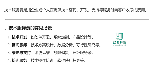 技術服務費包含哪些 技術服務費是按照業(yè)主要求,企業(yè)派遣具有一定技術專長和知識的專業(yè)技術人員、專家、教授或管理人員,為承擔項目的技術指導、咨詢提供設計文件、技術資料,并進行可行性研究以及參與管理等活動,然后按照合同或者協(xié)議規(guī)定向業(yè)主收取的費用。 技術服務費屬于營改增后現(xiàn)代服務的項目,現(xiàn)代服務是圍繞制造業(yè)、文化產業(yè)、現(xiàn)代物流產業(yè)等提供技術性、知識性服務的業(yè)務活動,包括研發(fā)和技術服務、信息技術服務、文化創(chuàng)意服務、物流輔助服務、租賃服務、鑒證咨詢服務、廣播影視服務、商務輔助服務和其他現(xiàn)代服務等內容。 以上是玖邀開業(yè)網(wǎng)小編為您整理的關于技術服務費包含哪些的內容,希望對您有所幫助。 |