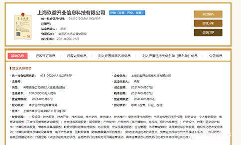 工商注冊(cè)號(hào)碼怎么查 第一步,百度搜索“全國(guó)企業(yè)信用信息公示系統(tǒng)”,找到官方網(wǎng)址點(diǎn)擊進(jìn)入。 第二步,在搜索框中輸入想要查詢的公司名稱,比如上海玖邀開業(yè)信息科技有限公司,點(diǎn)擊【查詢】。 第三步,根據(jù)篩選條件搜索到對(duì)應(yīng)的公司,就可以查看到它的工商注冊(cè)號(hào)碼了,點(diǎn)擊進(jìn)入還能看到公司的基礎(chǔ)信息、行政許可信息、行政處罰信息、經(jīng)營(yíng)異常名錄信息等。 |