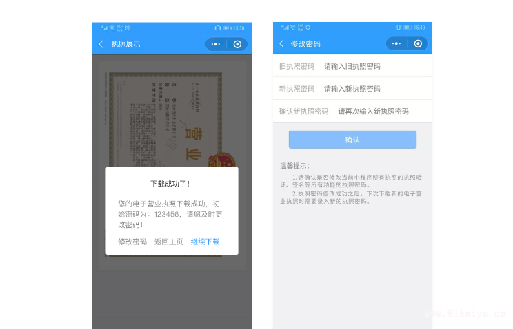 營業(yè)執(zhí)照電子版在哪里下載 電子營業(yè)執(zhí)照服務專區(qū) 網(wǎng)址:https://zzapp.gsxt.gov.cn/ 如何申領電子營業(yè)執(zhí)照 法定代表人是電子營業(yè)執(zhí)照的默認領取人。手機版電子營業(yè)執(zhí)照的首次領取只能由法定代表人通過手機等移動終端完成。法定代表人領取手機版電子營業(yè)執(zhí)照后,可自行或授權證照管理人員保管、持有、使用電子營業(yè)執(zhí)照。法定代表人或者證照管理人員可授權辦事人持電子營業(yè)執(zhí)照辦理相關的政務、商務、公共服務等業(yè)務。證照管理員和辦事人經(jīng)過授權后可下載電子營業(yè)執(zhí)照并使用。 具體申領流程主要分為: 第一步:進行實名認證,只有通過實名認證才可以下載執(zhí)照;如果實名認證不通過,需要到當?shù)氐氖袌霰O(jiān)督部門下載電子營業(yè)執(zhí)照。實名認證方式有: 1)微信小程序:先輸入微信支付密碼,獲取微信賬號的實名信息,包括姓名和證件號碼,再進行人臉識別,完成實名認證。 2)支付寶小程序:授權獲取支付寶賬號的實名信息,包括姓名和證件號碼,再授權采集人臉信息進行實名認證。 第二步:通過實名認證后,選擇企業(yè)所在的登記地,顯示該登記地的所有可下載和已下載的執(zhí)照記錄,在“可下載執(zhí)照記錄”中選擇企業(yè)名稱,下載該企業(yè)的電子營業(yè)執(zhí)照。 第三步:下載電子營業(yè)執(zhí)照前,需要閱讀并同意《執(zhí)照下載聲明》。如果本APP上修改過密碼,下載時需要輸入修改后的密碼。 第四步:執(zhí)照下載成功后,可以繼續(xù)下載其他的執(zhí)照;也可以修改本手機當前APP已經(jīng)下載的所有執(zhí)照的密碼,或者返回主頁進行其他的操作。 |
