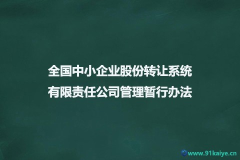 全國中小企業(yè)股份轉(zhuǎn)讓系統(tǒng)有限 責(zé)任公司管理暫行辦法 第一章 總 則 第一條 為加強對全國中小企業(yè)股份轉(zhuǎn)讓系統(tǒng)有限責(zé)任公司(以下簡稱全國股份轉(zhuǎn)讓系統(tǒng)公司)的管理,明確其職權(quán)與責(zé)任,維護股票掛牌轉(zhuǎn)讓及相關(guān)活動的正常秩序,根據(jù)《公司法》、《證券法》等法律、行政法規(guī),制定本辦法。 第二條 全國中小企業(yè)股份轉(zhuǎn)讓系統(tǒng)(以下簡稱全國股份轉(zhuǎn)讓系統(tǒng))是經(jīng)國務(wù)院批準設(shè)立的全國性證券交易場所。 第三條 股票在全國股份轉(zhuǎn)讓系統(tǒng)掛牌的公司(以下簡稱掛牌公司)為非上市公眾公司,股東人數(shù)可以超過200人,接受中國證券監(jiān)督管理委員會(以下簡稱中國證監(jiān)會)的統(tǒng)一監(jiān)督管理。 第四條 全國股份轉(zhuǎn)讓系統(tǒng)公司負責(zé)組織和監(jiān)督掛牌公司的股票轉(zhuǎn)讓及相關(guān)活動,實行自律管理。 第五條 全國股份轉(zhuǎn)讓系統(tǒng)公司應(yīng)當(dāng)堅持公益優(yōu)先的原則,維護公開、公平、公正的市場環(huán)境,保證全國股份轉(zhuǎn)讓系統(tǒng)的正常運行,為全國股份轉(zhuǎn)讓系統(tǒng)各參與人提供優(yōu)質(zhì)、高效、低成本的金融服務(wù)。 第六條 全國股份轉(zhuǎn)讓系統(tǒng)的股票掛牌轉(zhuǎn)讓及相關(guān)活動,必須遵守法律、行政法規(guī)和各項規(guī)章規(guī)定,禁止欺詐、內(nèi)幕交易、操縱市場等違法違規(guī)行為。 第七條 中國證監(jiān)會依法對全國股份轉(zhuǎn)讓系統(tǒng)公司、全國股份轉(zhuǎn)讓系統(tǒng)的各項業(yè)務(wù)活動及各參與人實行統(tǒng)一監(jiān)督管理,維護全國股份轉(zhuǎn)讓系統(tǒng)運行秩序,依法查處違法違規(guī)行為。 第二章 全國股份轉(zhuǎn)讓系統(tǒng)公司的職能 第八條 全國股份轉(zhuǎn)讓系統(tǒng)公司的職能包括: (一)建立、維護和完善股票轉(zhuǎn)讓相關(guān)技術(shù)系統(tǒng)和設(shè)施; (二)制定和修改全國股份轉(zhuǎn)讓系統(tǒng)業(yè)務(wù)規(guī)則; (三)接受并審查股票掛牌及其他相關(guān)業(yè)務(wù)申請,安排符合條件的公司股票掛牌; (四)組織、監(jiān)督股票轉(zhuǎn)讓及相關(guān)活動; (五)對主辦券商等全國股份轉(zhuǎn)讓系統(tǒng)參與人進行監(jiān)管; (六)對掛牌公司及其他信息披露義務(wù)人進行監(jiān)管; (七)管理和公布全國股份轉(zhuǎn)讓系統(tǒng)相關(guān)信息; (八)中國證監(jiān)會批準的其他職能。 第九條 全國股份轉(zhuǎn)讓系統(tǒng)公司應(yīng)當(dāng)就股票掛牌、股票轉(zhuǎn)讓、主辦券商管理、掛牌公司管理、投資者適當(dāng)性管理等依法制定基本業(yè)務(wù)規(guī)則。 全國股份轉(zhuǎn)讓系統(tǒng)公司制定與修改基本業(yè)務(wù)規(guī)則,應(yīng)當(dāng)經(jīng)中國證監(jiān)會批準。制定與修改其他業(yè)務(wù)規(guī)則,應(yīng)當(dāng)報中國證監(jiān)會備案。 第十條 全國股份轉(zhuǎn)讓系統(tǒng)掛牌新的證券品種或采用新的轉(zhuǎn)讓方式,應(yīng)當(dāng)報中國證監(jiān)會批準。 第十一條 全國股份轉(zhuǎn)讓系統(tǒng)公司應(yīng)當(dāng)為組織公平的股票轉(zhuǎn)讓提供保障,公布股票轉(zhuǎn)讓即時行情。未經(jīng)全國股份轉(zhuǎn)讓系統(tǒng)公司許可,任何單位和個人不得發(fā)布、使用或傳播股票轉(zhuǎn)讓即時行情。 第十二條 全國股份轉(zhuǎn)讓系統(tǒng)公司收取的資金和費用應(yīng)當(dāng)符合有關(guān)主管部門的規(guī)定,并優(yōu)先用于維護和完善相關(guān)技術(shù)系統(tǒng)和設(shè)施。 全國股份轉(zhuǎn)讓系統(tǒng)公司應(yīng)當(dāng)制定專項財務(wù)管理規(guī)則,并報中國證監(jiān)會備案。 第十三條 全國股份轉(zhuǎn)讓系統(tǒng)公司應(yīng)當(dāng)從其收取的費用中提取一定比例的金額設(shè)立風(fēng)險基金。風(fēng)險基金提取和使用的具體辦法,由中國證監(jiān)會另行制定。 第十四條 全國股份轉(zhuǎn)讓系統(tǒng)的登記結(jié)算業(yè)務(wù)由中國證券登記結(jié)算有限責(zé)任公司負責(zé)。全國股份轉(zhuǎn)讓系統(tǒng)公司應(yīng)當(dāng)與其簽訂業(yè)務(wù)協(xié)議,并報中國證監(jiān)會備案。 第三章 全國股份轉(zhuǎn)讓系統(tǒng)公司的組織結(jié)構(gòu) 第十五條 全國股份轉(zhuǎn)讓系統(tǒng)公司應(yīng)當(dāng)按照《公司法》等法律、行政法規(guī)和中國證監(jiān)會的規(guī)定,制定公司章程,明確股東會、董事會、監(jiān)事會和經(jīng)理層之間的職責(zé)劃分,建立健全內(nèi)部組織機構(gòu),完善公司治理。 全國股份轉(zhuǎn)讓系統(tǒng)公司章程的制定和修改,應(yīng)當(dāng)經(jīng)中國證監(jiān)會批準。 第十六條 全國股份轉(zhuǎn)讓系統(tǒng)公司的股東應(yīng)當(dāng)具備法律、行政法規(guī)和中國證監(jiān)會規(guī)定的資格條件,股東持股比例應(yīng)當(dāng)符合中國證監(jiān)會的有關(guān)規(guī)定。 全國股份轉(zhuǎn)讓系統(tǒng)公司新增股東或原股東轉(zhuǎn)讓所持股份的,應(yīng)當(dāng)報中國證監(jiān)會批準。 第十七條 全國股份轉(zhuǎn)讓系統(tǒng)公司董事會、監(jiān)事會的組成及議事規(guī)則應(yīng)當(dāng)符合有關(guān)法律、行政法規(guī)和中國證監(jiān)會的