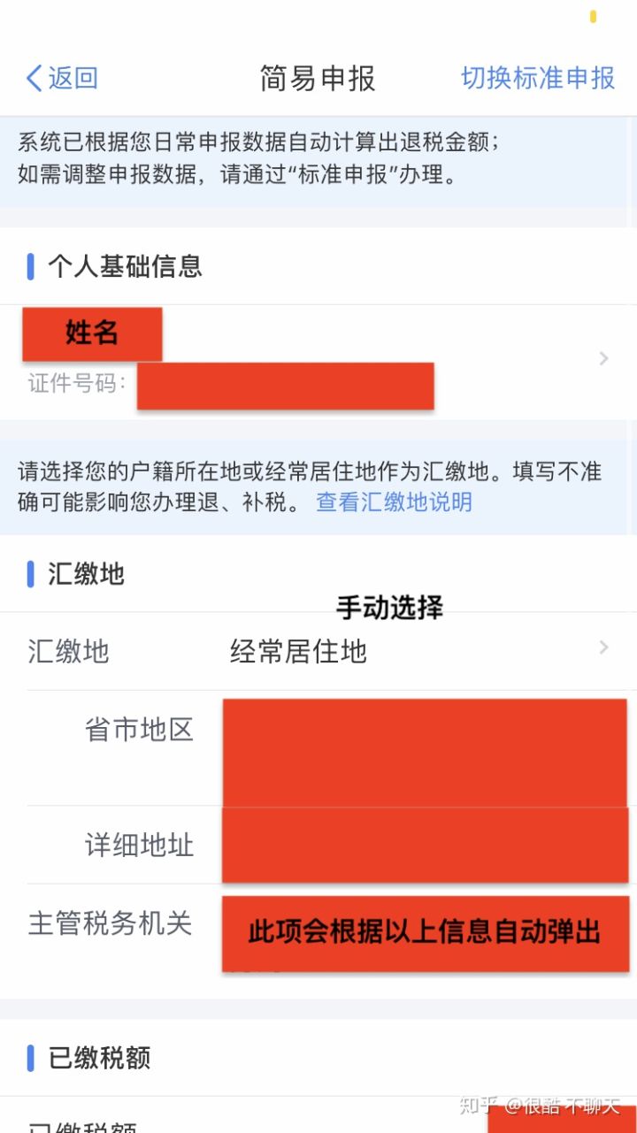 剛剛操作完自己的個(gè)人所得稅退稅流程,哈哈超開心,感覺像是收了筆意外之財(cái)。下面奉上詳細(xì)個(gè)人所得稅退稅流程詳解: 1.首先下載個(gè)人所得稅APP 2.點(diǎn)擊右下角“個(gè)人中心” 3.點(diǎn)擊注冊(cè)(已注冊(cè)則直接選擇登錄) 4.點(diǎn)擊“人臉識(shí)別認(rèn)證注冊(cè)”,點(diǎn)擊“同意并繼續(xù)” 5.輸入身份證號(hào),開始人臉識(shí)別 6.注冊(cè)完畢,開始登錄,查看“收入納稅明細(xì)查詢” 7.選擇2019年度,勾選所有所得類型 8.查看該年度所有納稅明細(xì) 9.查看完畢后退出,點(diǎn)擊首頁的“綜合所得年度匯算”,閱讀相關(guān)須知,并點(diǎn)擊同意 10.進(jìn)入簡(jiǎn)易申報(bào)階段。 11.填寫銀行卡信息,最后顯示提交完,等待審核 個(gè)人所得稅退稅流程詳解(附圖) 1.首先下載個(gè)人所得稅APP 2.點(diǎn)擊右下角“個(gè)人中心” 3.點(diǎn)擊注冊(cè)(已注冊(cè)則直接選擇登錄) 4.點(diǎn)擊“人臉識(shí)別認(rèn)證注冊(cè)”,點(diǎn)擊“同意并繼續(xù)” 5.輸入身份證號(hào),開始人臉識(shí)別 6.注冊(cè)完畢,開始登錄,查看“收入納稅明細(xì)查詢” 7.選擇2019年度,勾選所有所得類型 8.查看該年度所有納稅明細(xì) 9.查看完畢后退出,點(diǎn)擊首頁的“綜合所得年度匯算”,閱讀相關(guān)須知,并點(diǎn)擊同意 10.進(jìn)入簡(jiǎn)易申報(bào)階段 第一種,自動(dòng)彈出匯繳地信息(自行核對(duì)) 第二種,根據(jù)實(shí)際情況選擇經(jīng)常居住地或戶籍所在地,主管稅務(wù)機(jī)關(guān)會(huì)自動(dòng)彈出 完成后點(diǎn)擊提交申請(qǐng)。 11. 填寫銀行卡信息,最后顯示提交完,等待審核 |