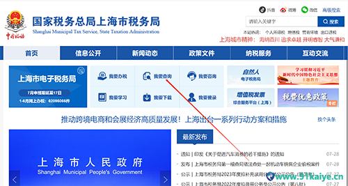 1、登錄所在省、市的稅務(wù)局官網(wǎng),點(diǎn)擊我要查詢下面以上海市為教程(如圖)