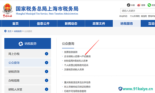 : 一般納稅人資格查詢方法介紹(如何查看企業(yè)是否是一般納稅人)1、登錄所在省、市的稅務(wù)局官網(wǎng),點(diǎn)擊我要查詢下面以上海市為教程(如圖)2、點(diǎn)擊企業(yè)納稅人一戶式查詢(如圖)3、輸入需要查詢的公司名稱和圖片驗(yàn)證碼 ...