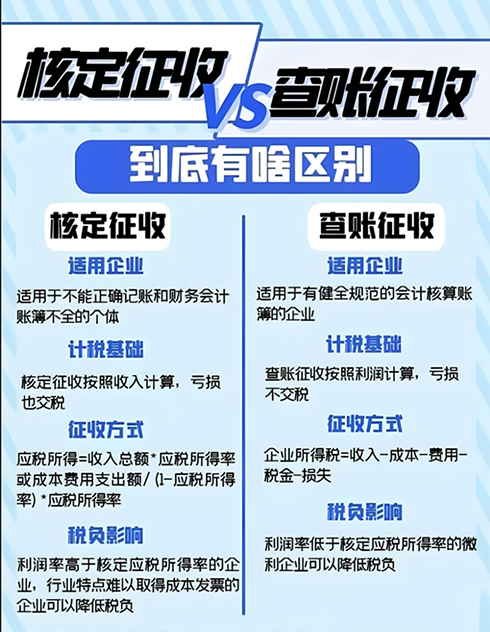 查賬征收和核定征收是兩種不同的稅收征收方式,它們主要在定義、計(jì)算公式、填寫表格類型、納稅人核算水平、征收稅率、計(jì)稅基礎(chǔ)以及對財(cái)務(wù)要求等方面存在區(qū)別。 定義:查賬征收主要適用于財(cái)務(wù)制度健全,能準(zhǔn)確核算收入、成本、費(fèi)用的企業(yè);而核定征收則主要適用于財(cái)務(wù)制度不健全,不能準(zhǔn)確核算收入、成本、費(fèi)用的企業(yè)。 計(jì)算公式:在查賬征收方式下,企業(yè)的應(yīng)納稅所得額乘以適用稅率,減除依照稅法關(guān)于稅收優(yōu)惠的規(guī)定減免和抵免的稅額后的余額,為應(yīng)納稅額。具體計(jì)算公式為:應(yīng)納企業(yè)所得稅=本年累計(jì)利潤*25%-本年度以前月(季度)已納所得稅。而在核定征收方式下,稅務(wù)機(jī)關(guān)會(huì)根據(jù)企業(yè)主營項(xiàng)目確定適用的應(yīng)稅所得率,然后按照特定的公式計(jì)算應(yīng)納所得稅額。 填寫表格類型:查賬征收一般填寫《企業(yè)所得稅月(季)度預(yù)繳納稅申報(bào)表(A類)》;核定征收則填寫《企業(yè)所得稅月(季)度預(yù)繳納稅申報(bào)表(B類)》。 納稅人核算水平:查賬征收要求納稅人能正確核算收入及成本費(fèi)用等;而核定征收則是對納稅人能合理計(jì)算和推定收入總額以及成本費(fèi)用總額,或者收入總額和成本費(fèi)用總額均不能查實(shí)、合理計(jì)算和推定的情況下采用的。 征收稅率:查賬征收和核定征收采用的稅率不同。查賬征收的稅率是明確的,而核定征收的稅率則需要根據(jù)企業(yè)的性質(zhì)來核算。 計(jì)稅基礎(chǔ):查賬征收是按企業(yè)的利潤作為基礎(chǔ)來計(jì)算企業(yè)所得稅;而核定征收則是按企業(yè)取得的收入的比例來計(jì)算企業(yè)所得稅。 對財(cái)務(wù)要求:查賬征收對企業(yè)財(cái)務(wù)要求較高,需要建立會(huì)計(jì)賬簿;而核定征收對財(cái)務(wù)要求相對較低,即使沒有財(cái)務(wù)人員和不做賬也可以。 總的來說,查賬征收和核定征收各有其特點(diǎn)和適用范圍。企業(yè)應(yīng)根據(jù)自身實(shí)際情況和稅法規(guī)定選擇合適的征收方式。同時(shí),無論采用哪種征收方式,企業(yè)都應(yīng)遵守稅法規(guī)定,按時(shí)申報(bào)納稅,避免出現(xiàn)稅收違法行為。 |
