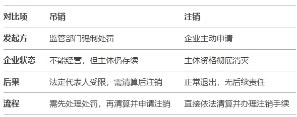 營(yíng)業(yè)執(zhí)照的 吊銷 與 注銷 是兩種不同的法律程序,主要區(qū)別如下: 1. 吊銷(撤銷) - 性質(zhì):屬于 行政處罰,由市場(chǎng)監(jiān)管部門強(qiáng)制取消企業(yè)的經(jīng)營(yíng)資格。 - 原因:企業(yè)因違法、違規(guī)(如虛假注冊(cè)、長(zhǎng)期未年報(bào)、嚴(yán)重違法經(jīng)營(yíng)等)被強(qiáng)制剝奪經(jīng)營(yíng)權(quán)。 - 法律后果: - 企業(yè)喪失經(jīng)營(yíng)資格,但主體資格仍存在(仍是法律上的“債務(wù)人”或“被告”)。 - 法定代表人可能被列入黑名單,3年內(nèi)不得擔(dān)任其他企業(yè)高管。 - 需依法完成清算后辦理注銷,否則可能承擔(dān)債務(wù)連帶責(zé)任。 2. 注銷 - 性質(zhì):屬于 企業(yè)自主申請(qǐng) 的合法退出程序。 - 原因:企業(yè)因解散、合并、破產(chǎn)等主動(dòng)終止經(jīng)營(yíng)。 - 法律后果: - 企業(yè)主體資格徹底消滅,權(quán)利義務(wù)終止。 - 法定代表人無(wú)后續(xù)責(zé)任(前提是清算合法)。 關(guān)鍵區(qū)別總結(jié) 注意事項(xiàng) - 被吊銷后必須注銷:企業(yè)被吊銷后仍需辦理注銷登記,否則法定代表人可能面臨信用懲戒。 - 債務(wù)責(zé)任:吊銷后未注銷的,股東/法定代表人可能對(duì)債務(wù)承擔(dān)連帶責(zé)任。 建議企業(yè)規(guī)范經(jīng)營(yíng),如需退出市場(chǎng),應(yīng)主動(dòng)辦理注銷以避免法律風(fēng)險(xiǎn)。 |