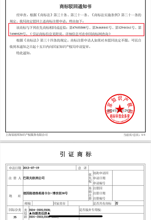 在商標(biāo)審查中,圖形商標(biāo)中的文字部分與純文字商標(biāo)是否構(gòu)成近似,需根據(jù)具體情況進(jìn)行綜合判斷。以下是關(guān)鍵分析要點(diǎn): 1. 核心判斷原則 根據(jù)《商標(biāo)審查及審理標(biāo)準(zhǔn)》,商標(biāo)近似需滿足: - 易混淆性:是否導(dǎo)致相關(guān)公眾對(duì)商品/服務(wù)來(lái)源產(chǎn)生誤認(rèn)。 - 三要素比對(duì):文字的字形、讀音、含義;圖形的構(gòu)圖、顏色;整體結(jié)構(gòu)組合方式。 2. 圖形商標(biāo)中的文字是否構(gòu)成近似? 情形一:文字為顯著部分 - 若圖形商標(biāo)中的文字突出、易識(shí)別(如單獨(dú)排列、字體醒目),且與純文字商標(biāo)相同或高度近似,可能判定為近似商標(biāo)。 - 例:圖形商標(biāo)中含顯著文字“NIKE”,他人注冊(cè)純文字“NIKE”構(gòu)成近似。 情形二:文字與圖形高度融合 - 若文字與圖形結(jié)合緊密(如藝術(shù)化設(shè)計(jì)、嵌入圖形中),且整體視覺效果差異明顯,則可能不認(rèn)定為近似。 - 例:圖形商標(biāo)中文字“Sun”以抽象火焰圖案呈現(xiàn),與普通字體的“Sun”商標(biāo)可能不近似。 3. 關(guān)鍵考量因素 - 文字顯著性:文字是否為主要識(shí)別部分(如消費(fèi)者是否以文字稱呼該商標(biāo))。 - 設(shè)計(jì)差異:圖形商標(biāo)的文字字體、排版、顏色等是否與純文字商標(biāo)形成明顯區(qū)別。 - 行業(yè)慣例:某些行業(yè)(如奢侈品、科技產(chǎn)品)更關(guān)注文字標(biāo)識(shí),文字近似風(fēng)險(xiǎn)更高。 - 商品/服務(wù)關(guān)聯(lián)性:相同或關(guān)聯(lián)類別中,近似判定更嚴(yán)格。 4. 實(shí)際案例參考 - 成立近似:圖形商標(biāo)“星巴克美人魚圖案+STARBUCKS COFFEE” vs. 文字商標(biāo)“STARBUCKS”(文字部分直接沖突)。 - 不成立近似:圖形商標(biāo)“蘋果圖形+APPLE” vs. 純文字“APPLE”(因圖形顯著性強(qiáng),且已形成市場(chǎng)區(qū)分)。 5. 風(fēng)險(xiǎn)規(guī)避建議 - 注冊(cè)策略:若圖形商標(biāo)中的文字為核心標(biāo)識(shí),建議單獨(dú)注冊(cè)文字商標(biāo)。 - 設(shè)計(jì)優(yōu)化:確保圖形與文字的結(jié)合具有獨(dú)創(chuàng)性,避免文字部分直接模仿現(xiàn)有文字商標(biāo)。 - 專業(yè)檢索:申請(qǐng)前通過(guò)商標(biāo)局?jǐn)?shù)據(jù)庫(kù)或?qū)I(yè)工具,排查文字部分的沖突風(fēng)險(xiǎn)。 結(jié)論 圖形商標(biāo)中的文字是否與文字商標(biāo)近似,需結(jié)合文字顯著性、設(shè)計(jì)整體性、行業(yè)特點(diǎn)綜合判斷。若文字部分易被消費(fèi)者單獨(dú)識(shí)別,則近似風(fēng)險(xiǎn)較高;反之,若文字與圖形不可分割且差異顯著,則可能不構(gòu)成近似。建議通過(guò)商標(biāo)局審查意見或?qū)I(yè)法律咨詢進(jìn)一步確認(rèn)。 |