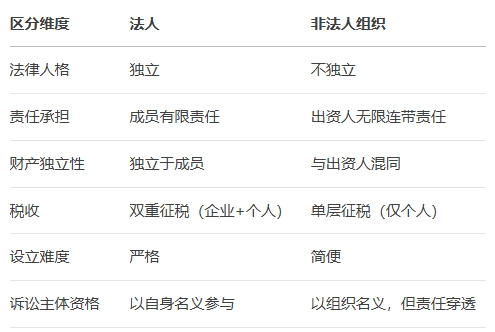 法人與非法人組織在法律地位、責(zé)任承擔(dān)、財(cái)產(chǎn)獨(dú)立性等方面存在顯著差異,以下是詳細(xì)對(duì)比: 一、法律地位 1. 法人 - 具有獨(dú)立的法律人格,能夠以自身名義獨(dú)立參與民事活動(dòng)(如簽訂合同、起訴應(yīng)訴)。 - 獨(dú)立于其成員存在,如公司是典型的營利法人。 2. 非法人組織 - 不具備完全獨(dú)立的法律人格,需以組織名義活動(dòng),但責(zé)任可能由出資人或成員承擔(dān)。 - 例如:合伙企業(yè)、個(gè)人獨(dú)資企業(yè)、個(gè)體工商戶等。 二、責(zé)任承擔(dān) 1. 法人 - 有限責(zé)任:成員(如股東)僅以出資額為限承擔(dān)責(zé)任,法人以自身財(cái)產(chǎn)獨(dú)立承擔(dān)債務(wù)。 - 例外:一人公司若財(cái)產(chǎn)混同,股東可能承擔(dān)連帶責(zé)任。 2. 非法人組織 - 無限責(zé)任:出資人或普通合伙人需以個(gè)人財(cái)產(chǎn)對(duì)企業(yè)債務(wù)承擔(dān)連帶責(zé)任。 - 例如:普通合伙企業(yè)的合伙人、個(gè)人獨(dú)資企業(yè)的業(yè)主。 三、財(cái)產(chǎn)獨(dú)立性 1. 法人 - 財(cái)產(chǎn)完全獨(dú)立于成員,法人以其全部財(cái)產(chǎn)對(duì)外擔(dān)責(zé)。 2. 非法人組織 - 財(cái)產(chǎn)與出資人個(gè)人財(cái)產(chǎn)通;焱瑐鶛(quán)人可追索出資人個(gè)人財(cái)產(chǎn)。 四、設(shè)立條件與程序 1. 法人 - 需嚴(yán)格條件:章程、組織機(jī)構(gòu)、注冊(cè)資本、登記公示(如公司需工商注冊(cè))。 - 類型包括營利法人(公司)、非營利法人(基金會(huì))、特別法人(政府機(jī)關(guān))。 2. 非法人組織 - 設(shè)立簡便:無需復(fù)雜章程或注冊(cè)資本,登記程序更靈活(如個(gè)體工商戶簡易登記)。 五、稅收處理 1. 法人 - 繳納企業(yè)所得稅,股東分紅另繳個(gè)人所得稅,存在雙重征稅。 2. 非法人組織 - 穿透征稅:利潤直接歸屬出資人,僅繳納個(gè)人所得稅(如合伙企業(yè))。 六、解散與清算 1. 法人 - 解散后法人資格終止,成員無后續(xù)責(zé)任(清算完畢即免責(zé))。 2. 非法人組織 - 解散后出資人仍可能對(duì)存續(xù)期間債務(wù)負(fù)責(zé)(如合伙企業(yè)解散后2年內(nèi)債權(quán)人可追償)。 七、典型示例 - 法人:有限責(zé)任公司、股份有限公司、事業(yè)單位、社會(huì)團(tuán)體。 - 非法人組織:普通合伙企業(yè)、個(gè)人獨(dú)資企業(yè)、個(gè)體工商戶、律師事務(wù)所(合伙制)。 總結(jié) 例外注意:特殊情況下(如一人公司財(cái)產(chǎn)混同),法人的有限責(zé)任可能被突破;有限合伙企業(yè)中的有限合伙人可享受有限責(zé)任,但需以不參與管理為前提。 |