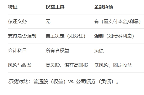 權(quán)益工具是指企業(yè)為籌集資金而發(fā)行的、代表所有者權(quán)益的金融工具,通常證明持有者在企業(yè)中的所有權(quán)份額。以下是對(duì)權(quán)益工具的詳細(xì)說明: 1. 權(quán)益工具的主要類型 - 普通股(Common Stock) 代表公司的基礎(chǔ)所有權(quán),股東享有投票權(quán)、分紅權(quán)和剩余資產(chǎn)分配權(quán)(但排在債權(quán)人和優(yōu)先股之后)。 - 優(yōu)先股(Preferred Stock) 具有固定股息,通常無投票權(quán),但在分紅和清算時(shí)優(yōu)先于普通股。某些優(yōu)先股可轉(zhuǎn)換為普通股。 - 其他形式 - 認(rèn)股權(quán)證(Warrants):允許持有者在特定價(jià)格購(gòu)買公司股票。 - 股票期權(quán)(Stock Options):?jiǎn)T工激勵(lì)計(jì)劃中常見的權(quán)益工具。 - 可轉(zhuǎn)換債券(Convertible Bonds):雖屬負(fù)債,但包含轉(zhuǎn)股選擇權(quán),可能轉(zhuǎn)為權(quán)益工具。 2. 核心特點(diǎn) - 所有權(quán)屬性:持有者是公司所有者,非債權(quán)人。 - 無償還義務(wù):企業(yè)無需償還本金,與債務(wù)工具(如債券)形成對(duì)比。 - 剩余索取權(quán):公司清算時(shí),權(quán)益工具持有者在債權(quán)人和優(yōu)先股之后獲得剩余資產(chǎn)。 - 收益不確定性:分紅取決于公司盈利情況,無強(qiáng)制支付義務(wù)。 - 參與管理權(quán):普通股股東通?赏ㄟ^投票參與重大決策。 3. 會(huì)計(jì)處理 - 發(fā)行時(shí): 收到的資金計(jì)入所有者權(quán)益(如“股本”和“資本公積”),不確認(rèn)為負(fù)債。 *示例*:公司發(fā)行每股1元的普通股100萬股,股本增加100萬元,若溢價(jià)發(fā)行(如每股5元),則400萬元計(jì)入資本公積。 - 股利處理: 分紅作為利潤(rùn)分配,計(jì)入“應(yīng)付股利”,而非損益表中的費(fèi)用。 - 回購(gòu)與注銷: 回購(gòu)自身權(quán)益工具(如股票)會(huì)導(dǎo)致所有者權(quán)益減少,庫(kù)存股作為權(quán)益的抵減項(xiàng)。 4. 與金融負(fù)債的區(qū)別 5. 應(yīng)用場(chǎng)景 - 企業(yè)融資:初創(chuàng)公司通過發(fā)行股票吸引風(fēng)險(xiǎn)投資,無需承擔(dān)債務(wù)壓力。 - 擴(kuò)張與并購(gòu):上市公司增發(fā)股票籌集資金,用于業(yè)務(wù)擴(kuò)展。 - 員工激勵(lì):授予股票期權(quán),將員工利益與公司長(zhǎng)期績(jī)效綁定。 - 優(yōu)化資本結(jié)構(gòu):發(fā)行優(yōu)先股可在不稀釋控制權(quán)的情況下融資。 6. 注意事項(xiàng) - 混合工具:如可轉(zhuǎn)換債券需根據(jù)條款判斷歸類為負(fù)債或權(quán)益(如IAS 32準(zhǔn)則)。 - 優(yōu)先股的特殊性:某些優(yōu)先股可能有強(qiáng)制贖回條款,需作為負(fù)債處理。 - 國(guó)際準(zhǔn)則差異:不同會(huì)計(jì)準(zhǔn)則(如IFRS vs. US GAAP)可能影響分類,例如對(duì)可贖回工具的處理。 總結(jié) 權(quán)益工具是企業(yè)獲取長(zhǎng)期資本的重要方式,賦予投資者所有權(quán)及收益權(quán),但無固定還款壓力。理解其與負(fù)債的區(qū)別、會(huì)計(jì)處理及應(yīng)用場(chǎng)景,對(duì)企業(yè)融資決策和投資者分析至關(guān)重要。 |