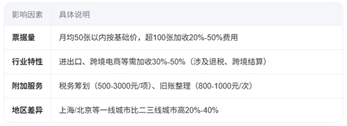 以下是2025年一般納稅人代理記賬的收費(fèi)標(biāo)準(zhǔn)及影響因素分析: 一、基礎(chǔ)價(jià)格區(qū)間 月度收費(fèi) 普通行業(yè):400-1000元/月(如貿(mào)易、服務(wù)業(yè)) 特殊行業(yè):600-1500元/月(如電商、建筑、醫(yī)療) 年度打包價(jià) 常規(guī)服務(wù):3000-12000元/年(一線城市平均高30%) 外資/集團(tuán)企業(yè):18000元/年起 二、核心定價(jià)因素 三、服務(wù)內(nèi)容對(duì)比 基礎(chǔ)套餐(含記賬、增值稅申報(bào)、財(cái)務(wù)報(bào)表) 增值服務(wù)(額外收費(fèi)): 工商年報(bào)代辦:500-800元/年 社保公積金代繳:200-500元/月 四、收費(fèi)模式選擇 按月付費(fèi):適合業(yè)務(wù)波動(dòng)大的企業(yè) 按年預(yù)付:可享8-9折優(yōu)惠 按業(yè)務(wù)量階梯收費(fèi):票據(jù)量超閾值后分段計(jì)價(jià) 注:上海地區(qū)外資企業(yè)若涉及跨境稅務(wù),建議選擇含多語(yǔ)種服務(wù)的代理機(jī)構(gòu)(費(fèi)用上浮15%-25%)。 |