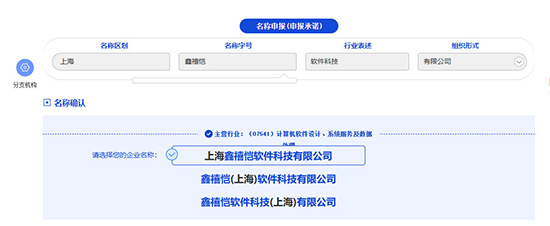 上海+字號+軟件科技+有限公司(如:上海XX軟件科技有限公司) - 需通過上!耙淮巴ā毕到y(tǒng)核名(避免重復(fù)或禁用詞)。