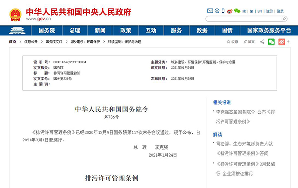 排污許可管理條例 第一章 總 則 第一條 為了加強排污許可管理,規(guī)范企業(yè)事業(yè)單位和其他生產(chǎn)經(jīng)營者排污行為,控制污染物排放,保護和改善生態(tài)環(huán)境,根據(jù)《中華人民共和國環(huán)境保護法》等有關(guān)法律,制定本條例。 第二條 依照法律規(guī)定實行排污許可管理的企業(yè)事業(yè)單位和其他生產(chǎn)經(jīng)營者(以下稱排污單位),應當依照本條例規(guī)定申請取得排污許可證;未取得排污許可證的,不得排放污染物。 根據(jù)污染物產(chǎn)生量、排放量、對環(huán)境的影響程度等因素,對排污單位實行排污許可分類管理: (一)污染物產(chǎn)生量、排放量或者對環(huán)境的影響程度較大的排污單位,實行排污許可重點管理; (二)污染物產(chǎn)生量、排放量和對環(huán)境的影響程度都較小的排污單位,實行排污許可簡化管理。 實行排污許可管理的排污單位范圍、實施步驟和管理類別名錄,由國務(wù)院生態(tài)環(huán)境主管部門擬訂并報國務(wù)院批準后公布實施。制定實行排污許可管理的排污單位范圍、實施步驟和管理類別名錄,應當征求有關(guān)部門、行業(yè)協(xié)會、企業(yè)事業(yè)單位和社會公眾等方面的意見。 第三條 國務(wù)院生態(tài)環(huán)境主管部門負責全國排污許可的統(tǒng)一監(jiān)督管理。 設(shè)區(qū)的市級以上地方人民政府生態(tài)環(huán)境主管部門負責本行政區(qū)域排污許可的監(jiān)督管理。 第四條 國務(wù)院生態(tài)環(huán)境主管部門應當加強全國排污許可證管理信息平臺建設(shè)和管理,提高排污許可在線辦理水平。 排污許可證審查與決定、信息公開等應當通過全國排污許可證管理信息平臺辦理。 第五條 設(shè)區(qū)的市級以上人民政府應當將排污許可管理工作所需經(jīng)費列入本級預算。 第二章 申請與審批 第六條 排污單位應當向其生產(chǎn)經(jīng)營場所所在地設(shè)區(qū)的市級以上地方人民政府生態(tài)環(huán)境主管部門(以下稱審批部門)申請取得排污許可證。 排污單位有兩個以上生產(chǎn)經(jīng)營場所排放污染物的,應當按照生產(chǎn)經(jīng)營場所分別申請取得排污許可證。 第七條 申請取得排污許可證,可以通過全國排污許可證管理信息平臺提交排污許可證申請表,也可以通過信函等方式提交。 排污許可證申請表應當包括下列事項: (一)排污單位名稱、住所、法定代表人或者主要負責人、生產(chǎn)經(jīng)營場所所在地、統(tǒng)一社會信用代碼等信息; (二)建設(shè)項目環(huán)境影響報告書(表)批準文件或者環(huán)境影響登記表備案材料; (三)按照污染物排放口、主要生產(chǎn)設(shè)施或者車間、廠界申請的污染物排放種類、排放濃度和排放量,執(zhí)行的污染物排放標準和重點污染物排放總量控制指標; (四)污染防治設(shè)施、污染物排放口位置和數(shù)量,污染物排放方式、排放去向、自行監(jiān)測方案等信息; (五)主要生產(chǎn)設(shè)施、主要產(chǎn)品及產(chǎn)能、主要原輔材料、產(chǎn)生和排放污染物環(huán)節(jié)等信息,及其是否涉及商業(yè)秘密等不宜公開情形的情況說明。 第八條 有下列情形之一的,申請取得排污許可證還應當提交相應材料: (一)屬于實行排污許可重點管理的,排污單位在提出申請前已通過全國排污許可證管理信息平臺公開單位基本信息、擬申請許可事項的說明材料; (二)屬于城鎮(zhèn)和工業(yè)污水集中處理設(shè)施的,排污單位的納污范圍、管網(wǎng)布置、最終排放去向等說明材料; (三)屬于排放重點污染物的新建、改建、擴建項目以及實施技術(shù)改造項目的,排污單位通過污染物排放量削減替代獲得重點污染物排放總量控制指標的說明材料。 第九條 審批部門對收到的排污許可證申請,應當根據(jù)下列情況分別作出處理: (一)依法不需要申請取得排污許可證的,應當即時告知不需要申請取得排污許可證; (二)不屬于本審批部門職權(quán)范圍的,應當即時作出不予受理的決定,并告知排污單位向有審批權(quán)的生態(tài)環(huán)境主管部門申請; (三)申請材料存在可以當場更正的錯誤的,應當允許排污單位當場更正; (四)申請材料不齊全或者不符合法定形式的,應當當場或者在3日內(nèi)出具告知單,一次性告知排污單位需要補正的全部材料;逾期不告知的,自收到申請材料之日起即視為受理; (五)屬于本審批部門職權(quán)范圍,申請材料齊全、符合法定形式,或者排污單位按照要求補正全部申請材料的,應當受理。 審批部門應當在全國排污許可證管理信息平臺上公開受理或者不予受理排污許可證申請的決定,同時向排污單位出具加蓋本審批部門專用印章和注明日期的書面憑證。 第十條 審批部門應當對排污單位提交的申請材料進行審查,并可以對排污單位的生產(chǎn)經(jīng)營場所進行現(xiàn)場核查。 審批部門可以組織技術(shù)機構(gòu)對排污許可證申請材料進行技術(shù)評估,并承擔相應費用。 技術(shù)機構(gòu)應當對其提出的技術(shù)評估意見負責,不得向排污單位收取任何費用。 第十一條 對具備下列條件的排污單位,頒發(fā)排污許可證: (一)依法取得建設(shè)項目環(huán)境影響報告書(表)批準文件,或者已經(jīng)辦理環(huán)境影響登記表備案手續(xù); (二)污染物排放符
