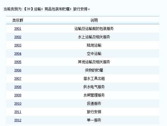 商標(biāo)第39類明細(xì),商標(biāo)第39類注冊范圍,商標(biāo)第三十九大類內(nèi)容包括什么? 第三十九類 運輸倉儲、能源分配、旅行服務(wù) 運輸;商品包裝和貯藏;旅行安排。 【注釋】 第三十九類主要包括將人、動物或商品從一處運送到另一處(通過鐵路、公路、水上、空中或管道)所提供的服務(wù)和與此有關(guān)的必要服務(wù),以及貨;蛘咂渌ㄖ餅楸阌诳垂堋⒈4嫔唐匪峁┵A藏的服務(wù)。 本類尤其包括: 供運輸者使用的由車站、橋梁、火車渡輪等公司提供的服務(wù); 租賃運輸車輛的服務(wù); 與海上拖曳、卸貨、港口和碼頭運轉(zhuǎn)、營救遇險船只及其貨物有關(guān)的服務(wù); 發(fā)貨前的包裝和打包業(yè)務(wù)的服務(wù); 經(jīng)紀(jì)人及旅行社提供旅行或貨運情況的服務(wù)以及提供價目、時刻或運送方式情況的服務(wù); 運輸前檢查車輛或貨物的服務(wù)。 本類尤其不包括: 與運輸企業(yè)廣告有關(guān)的服務(wù),如散發(fā)廣告?zhèn)鲉位驘o線電廣告(第三十五類); 由經(jīng)紀(jì)人或旅行社提供的發(fā)行旅行支票或者信用證的服務(wù)(第三十六類); 人或貨物在運輸過程中的(商業(yè)、火災(zāi)或生命)保險服務(wù)(第三十六類); 維修車輛的服務(wù),以及維修用于運輸人或貨物的運輸工具的服務(wù)(第三十七類); 由旅行社或經(jīng)紀(jì)人提供的預(yù)訂旅館房間的服務(wù)(第四十三類)。 商標(biāo)第39類明細(xì),商標(biāo)第39類注冊范圍,商標(biāo)第三十九大類內(nèi)容包括什么? 【3901】運輸及運輸前的包裝服務(wù) 【3902】水上運輸及相關(guān)服務(wù) 【3903】陸地運輸 【3904】空中運輸 【3905】其他運輸及相關(guān)服務(wù) 【3906】貨物的貯藏 【3907】潛水工具出租 【3908】供水電氣服務(wù) 【3909】水閘管理服務(wù) 【3910】投遞服務(wù) 【3911】旅行安排 【3912】單一服務(wù) 以上是91開業(yè)網(wǎng)小編為您整理的關(guān)于商標(biāo)第39類明細(xì),商標(biāo)第39類注冊范圍,商標(biāo)第三十九大類內(nèi)容包括什么的內(nèi)容,希望對您有所幫助。 |