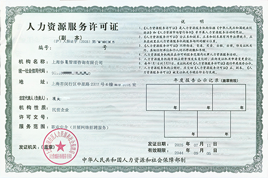 上海人力資源服務(wù)許可證辦理的條件、材料及收費標準如下: 一、上海人力資源服務(wù)許可證辦理條件 1.注冊資本:實繳注冊資本不低于10萬元人民幣。 2.經(jīng)營場所:需有固定經(jīng)營場所,面積不少于50平方米,且為商業(yè)用途。 3.人員要求:至少5名專職工作人員,具備大專以上學歷,部分區(qū)域要求持有相關(guān)從業(yè)資格證書,且需繳納社保。 4.管理制度:建立健全的工作章程、管理制度、服務(wù)流程及收費標準等。 5.企業(yè)及法人信用:企業(yè)及法定代表人無不良信用記錄。 二、上海人力資源服務(wù)許可證辦理申請材料 1.基礎(chǔ)材料:《人力資源服務(wù)許可申請表》、營業(yè)執(zhí)照副本復(fù)印件、法定代表人身份證明、經(jīng)營場所使用證明(房產(chǎn)證或租賃合同)。 2.人員材料:從業(yè)人員名單及學歷證明、主要負責人工作經(jīng)歷證明、從業(yè)人員職業(yè)資格證書、員工勞動合同及社保繳納證明。 3.管理材料:機構(gòu)章程和管理制度、服務(wù)流程和收費標準、信息化管理系統(tǒng)說明、誠信承諾書。 4.其他材料:銀行資信證明等。 三、上海人力資源服務(wù)許可證辦理收費標準 上海人力資源服務(wù)許可證辦理本身不收取審批費用。但需注意以下可能產(chǎn)生的費用: 1.場地費用:若需租賃辦公場地,費用根據(jù)市場行情而定,一般50平方米的商用辦公場地月租金在3000-10000元左右,具體因區(qū)域和地段而異。 2.人員社保費用:為專職人員繳納社保,費用根據(jù)員工工資基數(shù)和社保繳納比例計算,一般每月人均社保費用在2000-5000元左右。 3.代辦服務(wù)費用:若委托專業(yè)機構(gòu)代辦,費用通常在2000-7000元左右,具體取決于服務(wù)內(nèi)容和機構(gòu)收費標準。 注意事項: · 辦理過程中需確保材料真實有效,避免因材料造假導致申請失敗或被列入黑名單。 · 部分區(qū)域(如浦東新區(qū)、臨港新片區(qū))可能有特殊政策或優(yōu)惠,建議提前咨詢當?shù)厝松绮块T。 · 許可證有效期為5年,期滿前30日需辦理延續(xù)手續(xù),公司名稱、地址、注冊資本等變更時,也需在30日內(nèi)辦理變更登記。建議在辦理前充分了解最新政策要求,可咨詢專業(yè)服務(wù)機構(gòu)或當?shù)厝松绮块T,確保順利辦理。 |