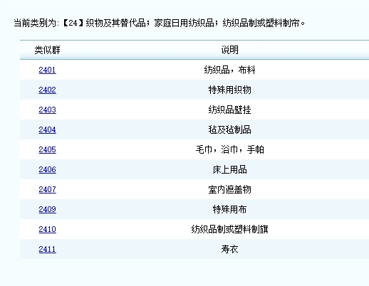 很多人可能對商標(biāo)分類不是很清楚,概念模糊。下面由上海公司注冊平臺小編為您解答一下關(guān)于布料床單類商標(biāo)注冊屬于哪一類,布料床單類商標(biāo)包括哪些內(nèi)容,希望對您有所幫助! 第24類布料床單 織物及其替代品;家庭日用紡織品;紡織品制或塑料制簾。 【注釋】 二十四類主要包括織物和家用織物覆蓋物。 本類尤其包括: ———家庭日用紡織品,例如:床罩,枕套,紡織品毛巾; ———紙制床單和枕套; ———睡袋,睡袋襯里; ———蚊帳。 本類尤其不包括: ———醫(yī)用電熱毯(第十類)和非醫(yī)用電熱毯(第十一類); ———紙制桌布和餐巾(第十六類); ———石棉防火幕(第十七類),竹簾和裝飾珠簾(第二十類); ———馬毯(第十八類); ———某些特殊用途的紡織品和織物,例如:書籍裝訂用織物(第十六類),絕緣、隔熱、隔音織物(第十七類),土工布(第十九類)。 群組信息 【2401】-紡織品,布料 【2402】-特殊用織物 【2403】-紡織品壁掛 【2404】-氈及氈制品 【2405】-毛巾,浴巾,手帕 【2406】-床上用品 【2407】-室內(nèi)遮蓋物 【2409】-特殊用布 【2410】-紡織品制或塑料制旗 【2411】-壽衣 以上是91開業(yè)網(wǎng)小編為您整理的關(guān)于布料床單類商標(biāo)注冊屬于哪一類,布料床單類商標(biāo)包括哪些內(nèi)容,希望對您有所幫助。 |