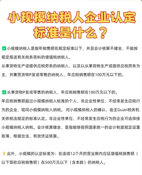 | 什么是小規(guī)模納稅人 小規(guī)模納稅人是指年銷(xiāo)售額在規(guī)定標(biāo)準(zhǔn)以下,并且會(huì)計(jì)核算不健全,不能按規(guī)定報(bào)送有關(guān)稅務(wù)資料的增值稅納稅人。 根據(jù)財(cái)政部于2018年4月4日進(jìn)行修訂發(fā)布的《關(guān)于統(tǒng)一增值稅小規(guī)模納稅人標(biāo)準(zhǔn)的通知》規(guī)定,增值稅小規(guī)模納稅人標(biāo)準(zhǔn)為年應(yīng)征增值稅銷(xiāo)售額500萬(wàn)元及以下。小規(guī)模納稅人應(yīng)納稅額計(jì)算方式為:應(yīng)納稅額=不含稅銷(xiāo)售額×征收率。 會(huì)計(jì)核算健全、能夠提供準(zhǔn)確稅務(wù)資料的小規(guī)模納稅人,可以向主管稅務(wù)機(jī)關(guān)申請(qǐng)一般納稅人資格認(rèn)定,不作為小規(guī)模納稅人。 小規(guī)模納稅人認(rèn)定標(biāo)準(zhǔn) 為完善增值稅制度,進(jìn)一步支持中小微企業(yè)發(fā)展,現(xiàn)將統(tǒng)一增值稅小規(guī)模納稅人標(biāo)準(zhǔn)有關(guān)事項(xiàng)通知如下: 一、增值稅小規(guī)模納稅人標(biāo)準(zhǔn)為年應(yīng)征增值稅銷(xiāo)售額500萬(wàn)元及以下。 二、按照《中華人民共和國(guó)增值稅暫行條例實(shí)施細(xì)則》第二十八條規(guī)定已登記為增值稅一般納稅人的單位和個(gè)人,在2018年12月31日前,可轉(zhuǎn)登記為小規(guī)模納稅人,其未抵扣的進(jìn)項(xiàng)稅額作轉(zhuǎn)出處理。 以上是91開(kāi)業(yè)網(wǎng)小編為您整理的關(guān)于什么是小規(guī)模納稅人,小規(guī)模納稅人認(rèn)定標(biāo)準(zhǔn)的內(nèi)容,希望對(duì)您有所幫助。 |
