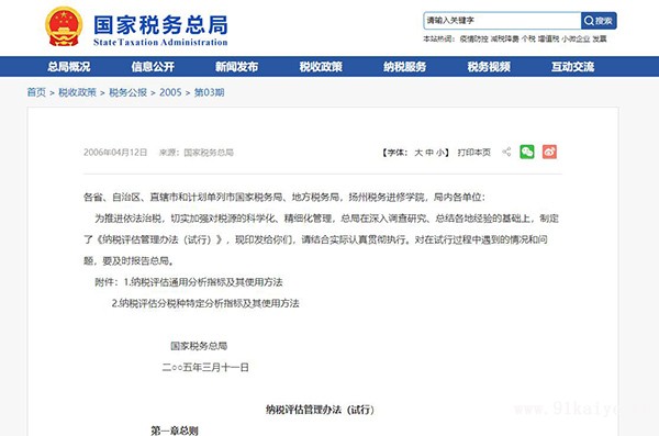 納稅評(píng)估管理辦法(試行) 第一章總則 第一條 為進(jìn)一步強(qiáng)化稅源管理,降低稅收風(fēng)險(xiǎn),減少稅款流失,不斷提高稅收征管的質(zhì)量和效率,根據(jù)國(guó)家有關(guān)稅收法律、法規(guī),結(jié)合稅收征管工作實(shí)際,制定本辦法。 第二條 納稅評(píng)估是指稅務(wù)機(jī)關(guān)運(yùn)用數(shù)據(jù)信息對(duì)比分析的方法,對(duì)納稅人和扣繳義務(wù)人(以下簡(jiǎn)稱(chēng)納稅人)納稅申報(bào)(包括減免緩抵退稅申請(qǐng),下同)情況的真實(shí)性和準(zhǔn)確性作出定性和定量的判斷,并采取進(jìn)一步征管措施的管理行為。納稅評(píng)估工作遵循強(qiáng)化管理、優(yōu)化服務(wù);分類(lèi)實(shí)施、因地制宜;人機(jī)結(jié)合、簡(jiǎn)便易行的原則。 第三條 納稅評(píng)估工作主要由基層稅務(wù)機(jī)關(guān)的稅源管理部門(mén)及其稅收管理員負(fù)責(zé),重點(diǎn)稅源和重大事項(xiàng)的納稅評(píng)估也可由上級(jí)稅務(wù)機(jī)關(guān)負(fù)責(zé)。 前款所稱(chēng)基層稅務(wù)機(jī)關(guān)是指直接面向納稅人負(fù)責(zé)稅收征收管理的稅務(wù)機(jī)關(guān);稅源管理部門(mén)是指基層稅務(wù)機(jī)關(guān)所屬的稅務(wù)分局、稅務(wù)所或內(nèi)設(shè)的稅源管理科(股)。 對(duì)匯總合并繳納企業(yè)所得稅企業(yè)的納稅評(píng)估,由其匯總合并納稅企業(yè)申報(bào)所在地稅務(wù)機(jī)關(guān)實(shí)施,對(duì)匯總合并納稅成員企業(yè)的納稅評(píng)估,由其監(jiān)管的當(dāng)?shù)囟悇?wù)機(jī)關(guān)實(shí)施;對(duì)合并申報(bào)繳納外商投資和外國(guó)企業(yè)所得稅企業(yè)分支機(jī)構(gòu)的納稅評(píng)估,由總機(jī)構(gòu)所在地的主管稅務(wù)機(jī)關(guān)實(shí)施。 第四條 開(kāi)展納稅評(píng)估工作原則上在納稅申報(bào)到期之后進(jìn)行,評(píng)估的期限以納稅申報(bào)的稅款所屬當(dāng)期為主,特殊情況可以延伸到往期或以往年度。 第五條 納稅評(píng)估主要工作內(nèi)容包括:根據(jù)宏觀稅收分析和行業(yè)稅負(fù)監(jiān)控結(jié)果以及相關(guān)數(shù)據(jù)設(shè)立評(píng)估指標(biāo)及其預(yù)警值;綜合運(yùn)用各類(lèi)對(duì)比分析方法篩選評(píng)估對(duì)象;對(duì)所篩選出的異常情況進(jìn)行深入分析并作出定性和定量的判斷;對(duì)評(píng)估分析中發(fā)現(xiàn)的問(wèn)題分別采取稅務(wù)約談、調(diào)查核實(shí)、處理處罰、提出管理建議、移交稽查部門(mén)查處等方法進(jìn)行處理;維護(hù)更新稅源管理數(shù)據(jù),為稅收宏觀分析和行業(yè)稅負(fù)監(jiān)控提供基礎(chǔ)信息等。 第二章 納稅評(píng)估指標(biāo) 第六條 納稅評(píng)估指標(biāo)是稅務(wù)機(jī)關(guān)篩選評(píng)估對(duì)象、進(jìn)行重點(diǎn)分析時(shí)所選用的主要指標(biāo),分為通用分析指標(biāo)和特定分析指標(biāo)兩大類(lèi),使用時(shí)可結(jié)合評(píng)估工作實(shí)際不斷細(xì)化和完善。 第七條 納稅評(píng)估指標(biāo)的功能、計(jì)算公式及其分析使用方法參照《納稅評(píng)估通用分析指標(biāo)及其使用方法》(附件1)、《納稅評(píng)估分稅種特定分析指標(biāo)及其使用方法》(附件2)。 第八條 納稅評(píng)估分析時(shí),要綜合運(yùn)用各類(lèi)指標(biāo),并參照評(píng)估指標(biāo)預(yù)警值進(jìn)行配比分析。評(píng)估指標(biāo)預(yù)警值是稅務(wù)機(jī)關(guān)根據(jù)宏觀稅收分析、行業(yè)稅負(fù)監(jiān)控、納稅人生產(chǎn)經(jīng)營(yíng)和財(cái)務(wù)會(huì)計(jì)核算情況以及內(nèi)外部相關(guān)信息,運(yùn)用數(shù)學(xué)方法測(cè)算出的算術(shù)、加權(quán)平均值及其合理變動(dòng)范圍。測(cè)算預(yù)警值,應(yīng)綜合考慮地區(qū)、規(guī)模、類(lèi)型、生產(chǎn)經(jīng)營(yíng)季節(jié)、稅種等因素,考慮同行業(yè)、同規(guī)模、同類(lèi)型納稅人各類(lèi)相關(guān)指標(biāo)的若干年度的平均水平,以使預(yù)警值更加真實(shí)、準(zhǔn)確和具有可比性。納稅評(píng)估指標(biāo)預(yù)警值由各地稅務(wù)機(jī)關(guān)根據(jù)實(shí)際情況自行確定。 第三章 納稅評(píng)估對(duì)象 第九條 納稅評(píng)估的對(duì)象為主管稅務(wù)機(jī)關(guān)負(fù)責(zé)管理的所有納稅人及其應(yīng)納所有稅種。 第十條 納稅評(píng)估對(duì)象可采用計(jì)算機(jī)自動(dòng)篩選、人工分析篩選和重點(diǎn)抽樣篩選等方法。 第十一條 篩選納稅評(píng)估對(duì)象,要依據(jù)稅收宏觀分析、行業(yè)稅負(fù)監(jiān)控結(jié)果等數(shù)據(jù),結(jié)合各項(xiàng)評(píng)估指標(biāo)及其預(yù)警值和稅收管理員掌握的納稅人實(shí)際情況,參照納稅人所屬行業(yè)、經(jīng)濟(jì)類(lèi)型、經(jīng)營(yíng)規(guī)模、信用等級(jí)等因素進(jìn)行全面、綜合的審核對(duì)比分析。 第十二條 綜合審核對(duì)比分析中發(fā)現(xiàn)有問(wèn)題或疑點(diǎn)的納稅人要作為重點(diǎn)評(píng)估分析對(duì)象;重點(diǎn)稅源戶、特殊行業(yè)的重點(diǎn)企業(yè)、稅負(fù)異常變化、長(zhǎng)時(shí)間零稅負(fù)和負(fù)稅負(fù)申報(bào)、納稅信用等級(jí)低下、日常管理和稅務(wù)檢查中發(fā)現(xiàn)