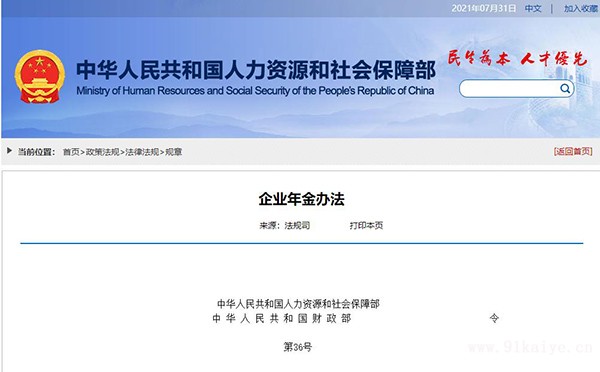 企業(yè)年金辦法 第一章 總 則 第一條 為建立多層次的養(yǎng)老保險制度,推動企業(yè)年金發(fā)展,更好地保障職工退休后的生活,根據(jù)《中華人民共和國勞動法》、《中華人民共和國勞動合同法》、《中華人民共和國社會保險法》、《中華人民共和國信托法》和國務院有關規(guī)定,制定本辦法。 第二條 本辦法所稱企業(yè)年金,是指企業(yè)及其職工在依法參加基本養(yǎng)老保險的基礎上,自主建立的補充養(yǎng)老保險制度。國家鼓勵企業(yè)建立企業(yè)年金。建立企業(yè)年金,應當按照本辦法執(zhí)行。 第三條 企業(yè)年金所需費用由企業(yè)和職工個人共同繳納。企業(yè)年金基金實行完全積累,為每個參加企業(yè)年金的職工建立個人賬戶,按照國家有關規(guī)定投資運營。企業(yè)年金基金投資運營收益并入企業(yè)年金基金。 第四條 企業(yè)年金有關稅收和財務管理,按照國家有關規(guī)定執(zhí)行。 第五條 企業(yè)和職工建立企業(yè)年金,應當確定企業(yè)年金受托人,由企業(yè)代表委托人與受托人簽訂受托管理合同。受托人可以是符合國家規(guī)定的法人受托機構,也可以是企業(yè)按照國家有關規(guī)定成立的企業(yè)年金理事會。 第二章 企業(yè)年金方案的訂立、變更和終止 第六條 企業(yè)和職工建立企業(yè)年金,應當依法參加基本養(yǎng)老保險并履行繳費義務,企業(yè)具有相應的經(jīng)濟負擔能力。 第七條 建立企業(yè)年金,企業(yè)應當與職工一方通過集體協(xié)商確定,并制定企業(yè)年金方案。企業(yè)年金方案應當提交職工代表大會或者全體職工討論通過。 第八條 企業(yè)年金方案應當包括以下內(nèi)容: (一)參加人員; (二)資金籌集與分配的比例和辦法; (三)賬戶管理; (四)權益歸屬; (五)基金管理; (六)待遇計發(fā)和支付方式; (七)方案的變更和終止; (八)組織管理和監(jiān)督方式; (九)雙方約定的其他事項。 企業(yè)年金方案適用于企業(yè)試用期滿的職工。 第九條 企業(yè)應當將企業(yè)年金方案報送所在地縣級以上人民政府人力資源社會保障行政部門。 中央所屬企業(yè)的企業(yè)年金方案報送人力資源社會保障部。 跨省企業(yè)的企業(yè)年金方案報送其總部所在地省級人民政府人力資源社會保障行政部門。 省內(nèi)跨地區(qū)企業(yè)的企業(yè)年金方案報送其總部所在地設區(qū)的市級以上人民政府人力資源社會保障行政部門。 第十條 人力資源社會保障行政部門自收到企業(yè)年金方案文本之日起15日內(nèi)未提出異議的,企業(yè)年金方案即行生效。 第十一條 企業(yè)與職工一方可以根據(jù)本企業(yè)情況,按照國家政策規(guī)定,經(jīng)協(xié)商一致,變更企業(yè)年金方案。變更后的企業(yè)年金方案應當經(jīng)職工代表大會或者全體職工討論通過,并重新報送人力資源社會保障行政部門。 第十二條 有下列情形之一的,企業(yè)年金方案終止: (一)企業(yè)因依法解散、被依法撤銷或者被依法宣告破產(chǎn)等原因,致使企業(yè)年金方案無法履行的; (二)因不可抗力等原因致使企業(yè)年金方案無法履行的; (三)企業(yè)年金方案約定的其他終止條件出現(xiàn)的。 第十三條 企業(yè)應當在企業(yè)年金方案變更或者終止后10日內(nèi)報告人力資源社會保障行政部門,并通知受托人。企業(yè)應當在企業(yè)年金方案終止后,按國家有關規(guī)定對企業(yè)年金基金進行清算,并按照本辦法第四章相關規(guī)定處理。 第三章 企業(yè)年金基金籌集 第十四條 企業(yè)年金基金由下列各項組成: (一)企業(yè)繳費; (二)職工個人繳費; (三)企業(yè)年金基金投資運營收益。 第十五條 企業(yè)繳費每年不超過本企業(yè)職工工資總額的8%。企業(yè)和職工個人繳費合計不超過本企業(yè)職工工資總額的12%。具體所需費用,由企業(yè)和職工一方協(xié)商確定。 職工個人繳費由企業(yè)從職工個人工資中代扣代繳。 第十六條 實行企業(yè)年金后,企業(yè)如遇到經(jīng)營虧損、重組并購等當期不能繼續(xù)繳費的情況,經(jīng)與職工一方協(xié)商,可以中止繳費。不能繼續(xù)繳費的情況消失后,企業(yè)和職工恢復繳費,并可以根據(jù)本企業(yè)實際情況,按照中止繳費時的企業(yè)年金方案予以補繳。補繳的年限和金額不得超過實際中止繳費的年限和金額。 第四章 賬戶管理 第十七條 企業(yè)繳費應當按照企業(yè)年金方案確定的比例和辦法計入職工企業(yè)年金個人賬戶,職工個人繳費計入本人企業(yè)年金個人賬戶。 第十八條 企業(yè)應當合理確定本單位當期繳費計入職工企業(yè)年金個人賬戶的最高額與平均額的差距。企業(yè)當期繳費計入職工企業(yè)年金個人賬戶的最高額與平均額不得超過5倍。 第十九條 職工企業(yè)年金個人賬戶中個人繳費及其投資收益自始歸屬于職工個人。 職工企業(yè)年金個人賬戶中企業(yè)繳費及其投資收益,企業(yè)可以與職工一方約定其自始歸屬于職工個人,也可以約定隨著職工在本企業(yè)工作年限的增加逐步歸屬于職工個人,完全歸屬于職工個人的期限最長不超過8年。 第二十條 有下列情形之一的,職工企業(yè)年金個人賬戶中企業(yè)繳費及其投資收益完全歸屬于職工個人: (一)職工達到法定退休年齡、完全喪失勞動能力或者死亡